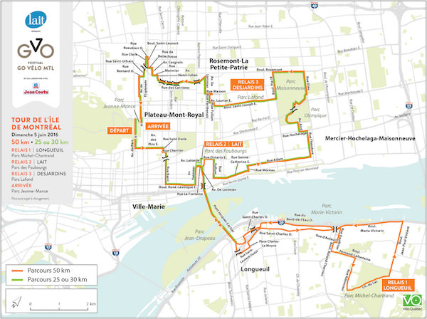 ● велотур по острову Монреаль (Tour de l’Île de Montréal) в воскресенье 5 июня 2016 по    маршрутам  в 25, 30, 50 и 65-100 км