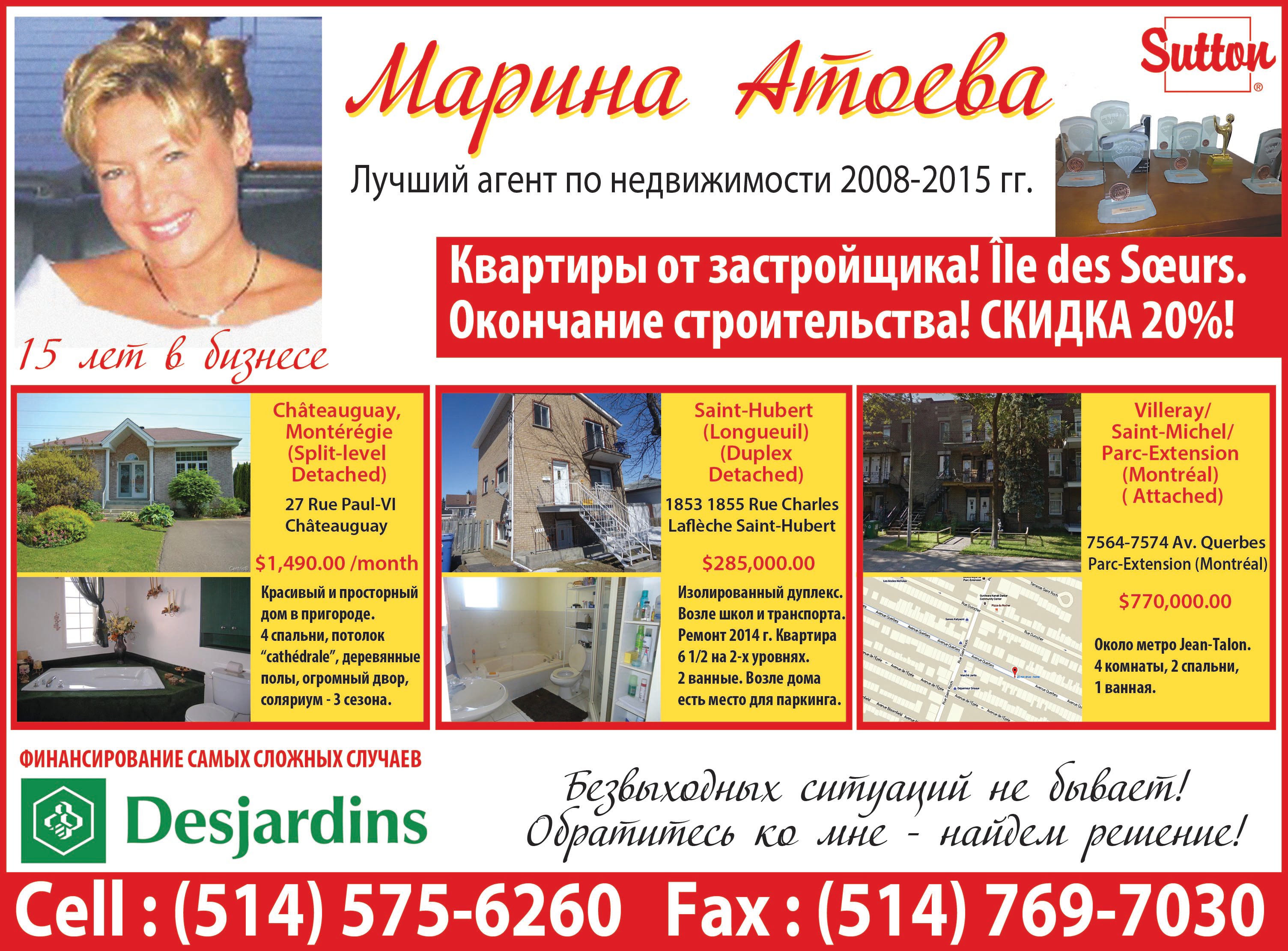 Марина Атоева — Лучший агент по недвижимости 2008-2015 гг.