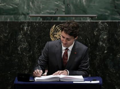 «Сегодня своей подписью я даю вам слово, что Канада не прекратит стараться, − заявил Трюдо в зале Генеральной Ассамблеи ООН перед десятками других глав государств. − Изменение климата станет проверкой нашей сообразительности, нашей сострадательности и нашей воли. Но эта задача нам по плечу. Я призываю другие государства, поставившие свою подпись, без промедления начать стремиться к выполнению своих обязательств».