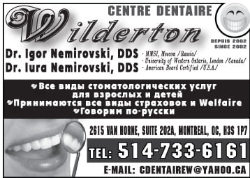 РекламаСтоматологический центр Wilderton — доктор Игорь Немировский. by Svitlana MatviyenkoЯнв 3, 2016Дек 30, 201503 Share0 Стоматологический центр Wilderton — доктор Игорь Немировский. Все виды стоматологических услуг для взрослых и детей Принимаются все виды страховок и ВЕЛФЕР Говорим по-русски 514-733-6161 [email protected] Пожалуйста, оставьте это поле пустым. Подпишитесь на ежедневную рассылку новостей о Канаде, Квебеке и Монреале. Читайте актуальные новости каждый день. Не пропустите главные события! Проверьте ваш почтовый ящик или спам, чтобы подтвердить свою подписку.