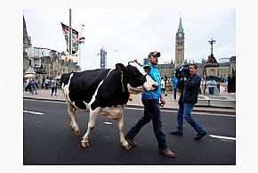 Коровы и тракторы заполонили сегодня Парламентский холм: тысячи фермеров-производителей молока собрались там с требованием к федеральному правительству обеспечить соблюдение законов относительно использования диафильтрованного молока. К протестующим присоединились и фермеры, прибывшие в Оттаву на тракторах из Квебека.