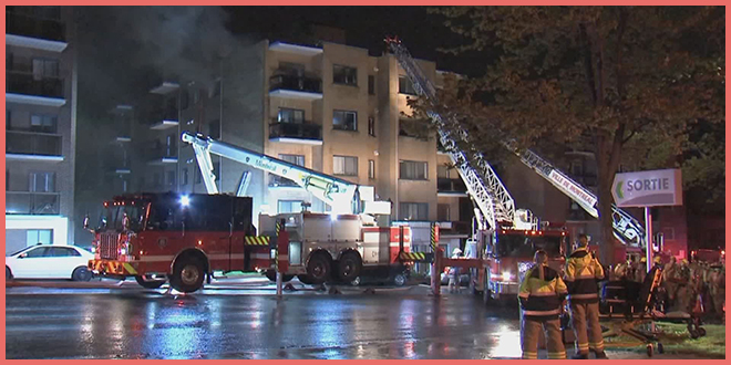 Около 10 вечера в многоквартирном доме в Кот-де-Неж вспыхнул пожар. По предварительной версии, огонь начался на кухне одной из квартир и перекинулся на верхние этажи здания.