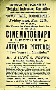 Считается, что его снял житель Манитобы Джеймс Фрир в 1897 году. Это был зазывный фильм о том, сколько возможностей для получения хорошей работы таит в себе Канада. Звали на работу жителей Великобритании. Картина называлась “Десять лет в Манитобе”.