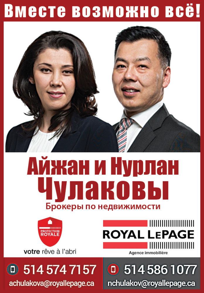 НедвижимостьРекламаАйжан и Нурлан Чулаковы. Брокеры по недвижимости. by Svitlana MatviyenkoСен 29, 2018Сен 27, 201800 Share0 Вместе возможно всё! [email protected] (514) 574-7157 [email protected] (514) 586-1077 Пожалуйста, оставьте это поле пустым. Подпишитесь на ежедневную рассылку новостей о Канаде, Квебеке и Монреале. Читайте актуальные новости каждый день. Не пропустите главные события! Проверьте ваш почтовый ящик или спам, чтобы подтвердить свою подписку.