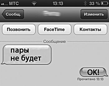 Ждем преподавателя, он опаздывает. Пишу ему смс «пары не будет» и забываю в конце написать знак вопроса, через минуту приходит «ОК».