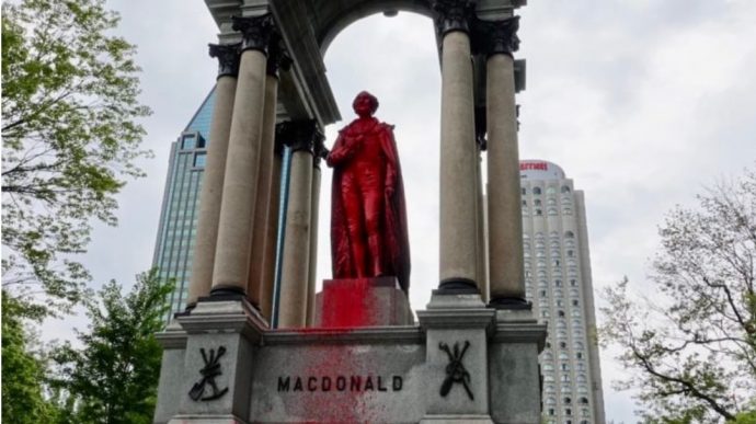 Называющие себя «анти-колониалистами» вандалы обезобразили бронзовую статую первого премьер-министра Канады Джона Макдональда в Монреале.