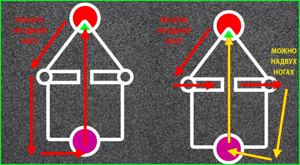 Это популярная 50 лет назад детская подвижная игра. На земле чертится «тело» кальмара, состоящее из кругов, треугольников и прямоугольников (ничего не напоминает?). Команда участников, играющая в нападении, стоит снаружи и должна через «хвост» пробраться в «голову» животного, а команда «обороны» должна им помешать это сделать. Участники, наступившие на линии или «выпавшие» из тела кальмара — «умирают». Интересны правила? — тут больше деталей.
