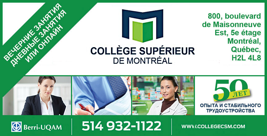 Вечерние, дневные или онлайн занятия. Collège Supérieur de Montréal.