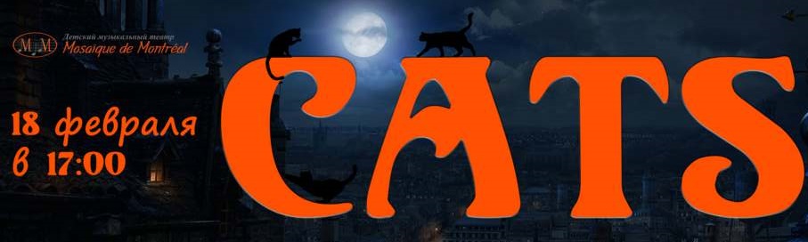 18 февраля в 17.00 в Монреале детский Музыкальный Театр “Mosaique de Montreal” представит знаменитый мюзикл Э.Ллойда Уэйббера «Кошки» по мотивам сборника детский стихов Т.С.Эллиота «Популярная наука о кошках, написанная старым опоссумом». Спектакль пройдет по адресу 2915 Ontario Est, Монреаль H2K 1X7. “Cats” – это больше, чем мюзикл: это часть мировой истории музыкального театра. Прекрасная музыка, костюмы, хореография уведут вас в таинственный мир самых загадочных, непредсказуемых и очаровательных кошек. Цена билета на это представление – 20 долларов. Дополнительная информация по телефону: 438 994 1736.