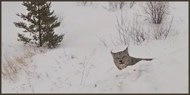 Сначала мужчина не понял, о чем идет речь. Однако затем он заметил ЕЕ. Дикая рысь приближалась к ним, прижав морду к снегу.
