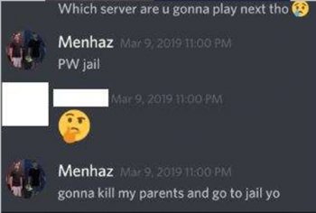 Коммент Менхаза, написанный в марте 2019: «Собираюсь убить родителей и отправиться в тюрьму».