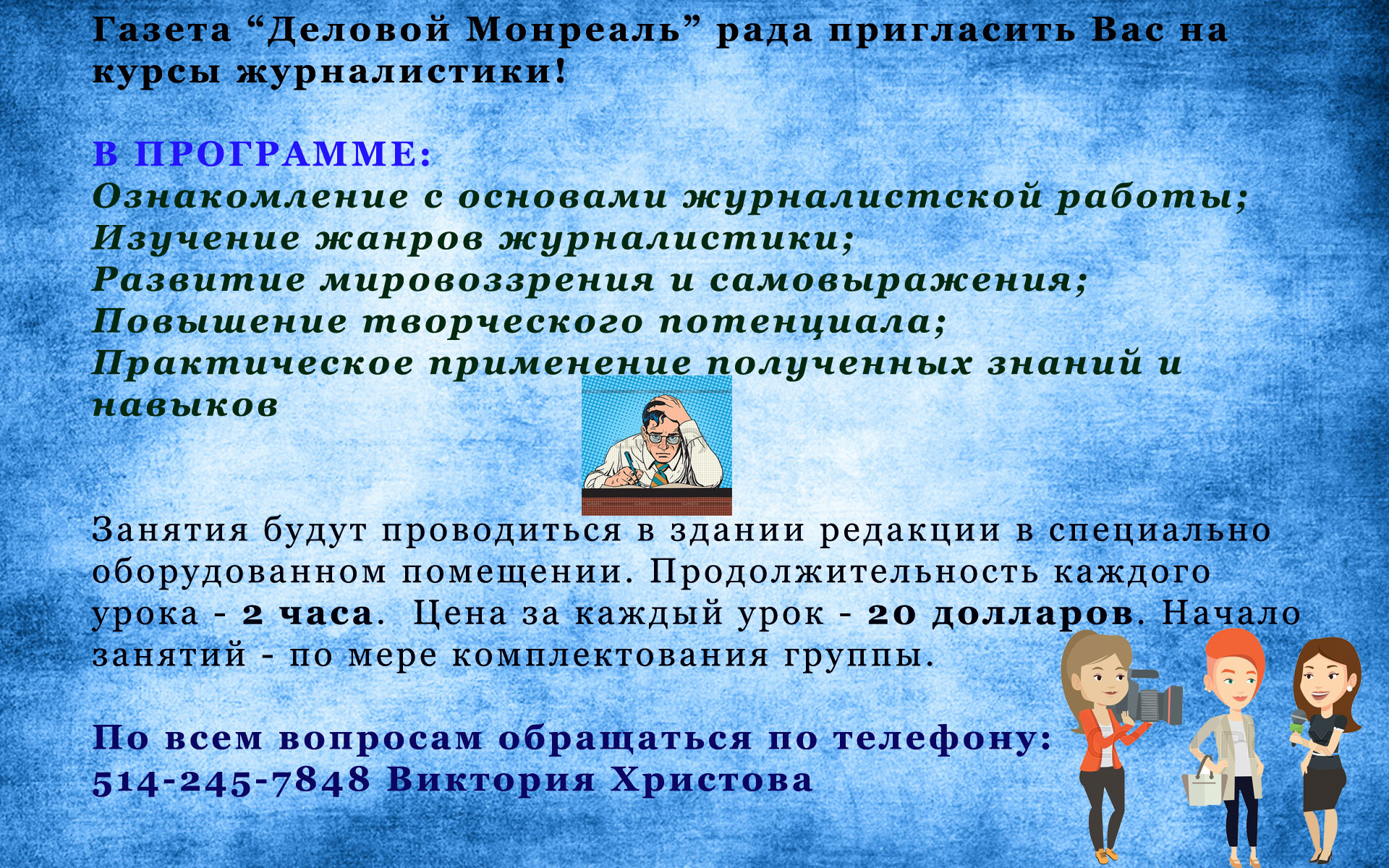 Газета “Деловой Монреаль” рада пригласить Вас на курсы журналистики!