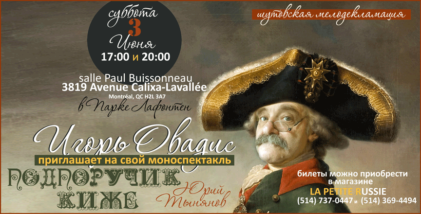 Билеты можно приобрести в магазине La Petite Russie (514) 737.0447 и по телефону (514) 369.4494.