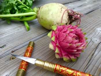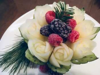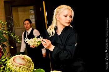 Да, люди стали интересоваться, что это за искусство. А в Монреале оно практически не развито, считанные единицы занимаются карвингом. И люди стали ко мне обращаться с просьбой дать им уроки, обучить их мастерству. Вначале я сомневалась, но постепенно все пошло неплохо. И сейчас мои ученицы уже сами делают украшения на столы. Я поняла, что у меня это получается и результат был налицо. И я начала более глубоко заниматься преподавательской деятельностью. В этом есть свои плюсы. Когда ты вырезаешь сама, у тебя со временем доходит это до уровня автоматизма и ты не задумываешься, под каким углом ты держишь нож, например. А преподавая, на эти тонкости нужно и важно обращать внимание. И я взглянула на карвинг иначе. Сейчас я преподаю базовый курс. Ведь если неправильно держать нож, вырезанная роза не раскроется. Сделать раскрытую розу или бутон – все зависит от угла, под которым вы держите нож. Изучив все это, я стала преподавать.