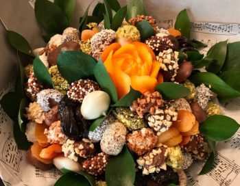 Все зависит от множества факторов. Самые главные из них: количество ингридиентов и количество заказов. Перед праздниками я всем рекомендую делать заказы заранее. Но если все компоненты у меня есть, я соберу букет за 20 минут, настолько у меня уже набита рука. Букеты посложнее – до часа времени забирают. Фрукты бывают капризными, например сочные мандарины или клубника. С ними сложнее.