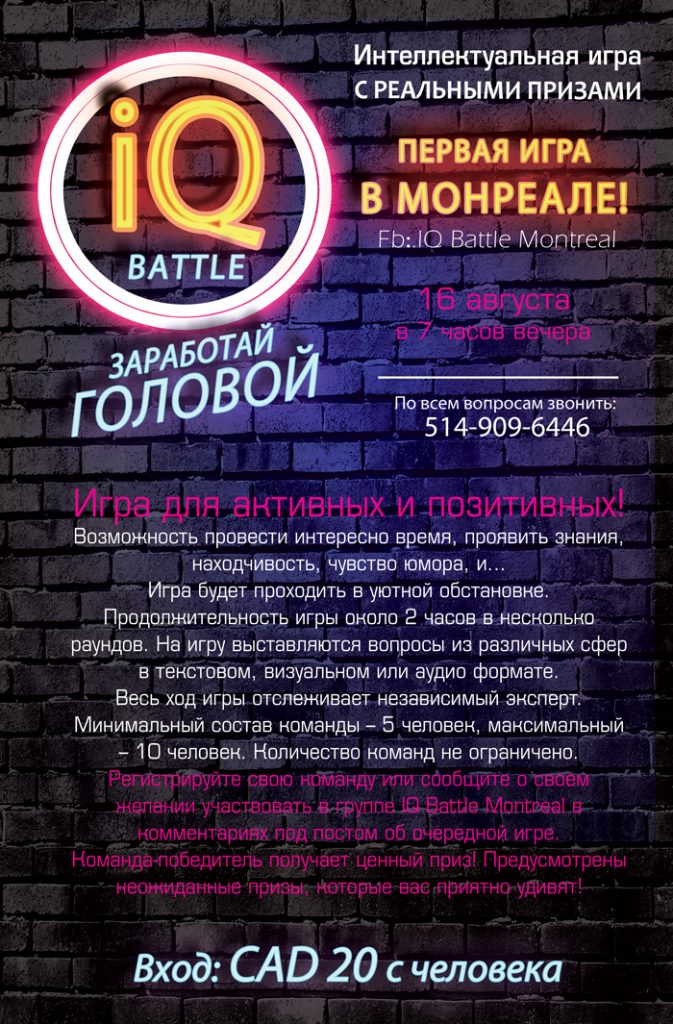 Игра состоится 16 августа в 19:00 в ресторане Georgia по адресу: 5112 Decarie blvd. (угол Queen Mary), H3X 2H9