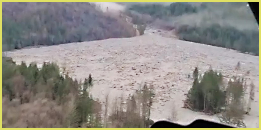 Пилот вертолета Бастиан Флери провел разведку с воздуха и был шокирован увиденным. Он говорит, что часть ледяного поля Хоматко откололась, упала в озеро и вызвала большую разрушительную волну. «Мы никогда не видели такого количества поваленного леса. Вся вода покрыта деревьями».