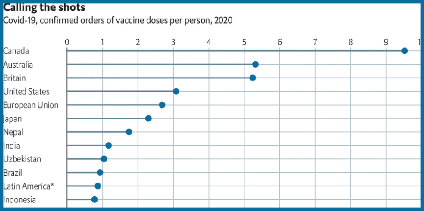 Самыми запасливыми, после Канады, оказались Австралия и Великобритания, заказавшие чуть больше 5 прививок на каждого своего жителя.