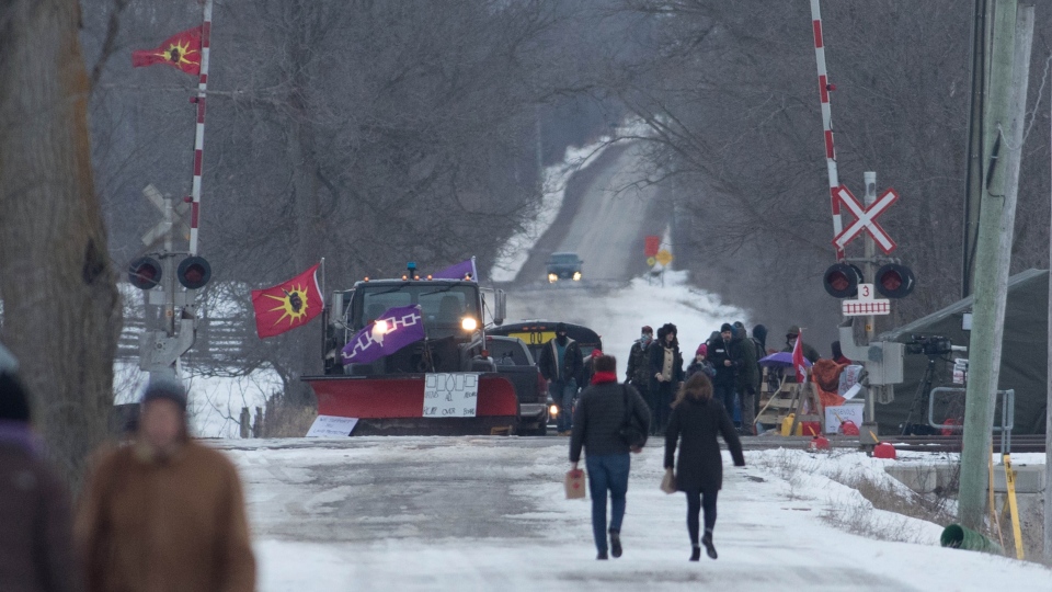 Протест возле железнодорожной линии, близ Бельвиля, Онтарио, препятствует движению поездов по маршруту Торонто-Оттава-Монреаль с 6 февраля.