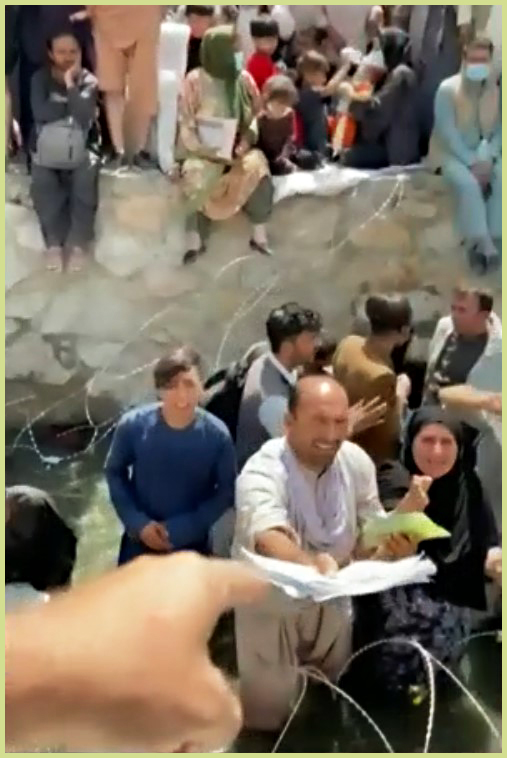 В сети набирает просмотры видео, в котором афганцы стоят в канаве с водой около аэропорта, размахивая папками со своими документами, надеясь попасть в самолеты союзников.