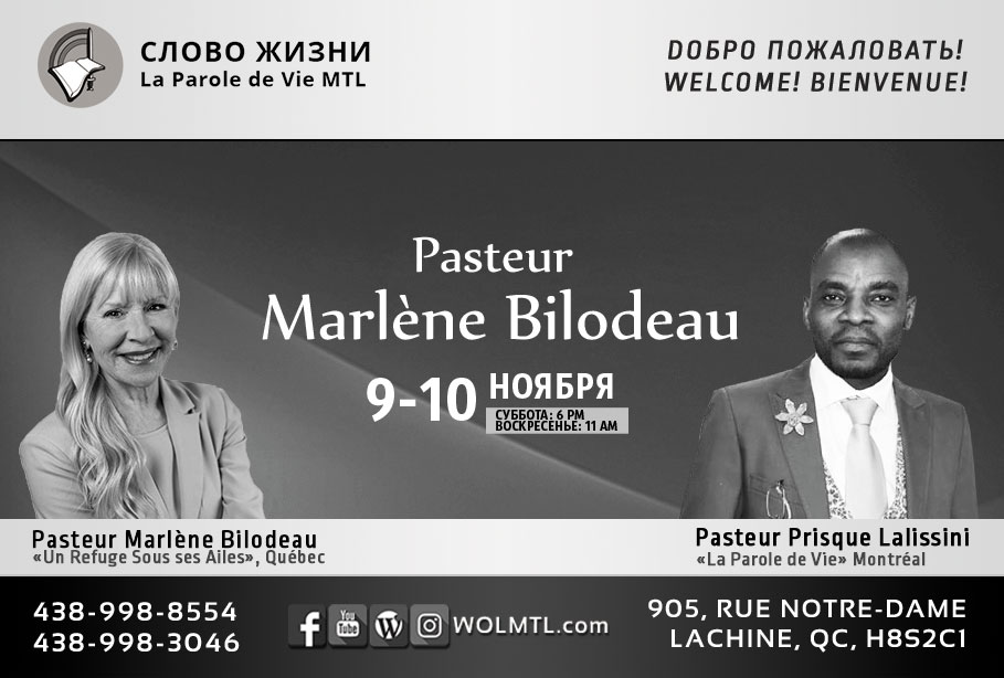 У нас будут две особые службы при участии пастора Марлены Билодо из Квебек-сити.