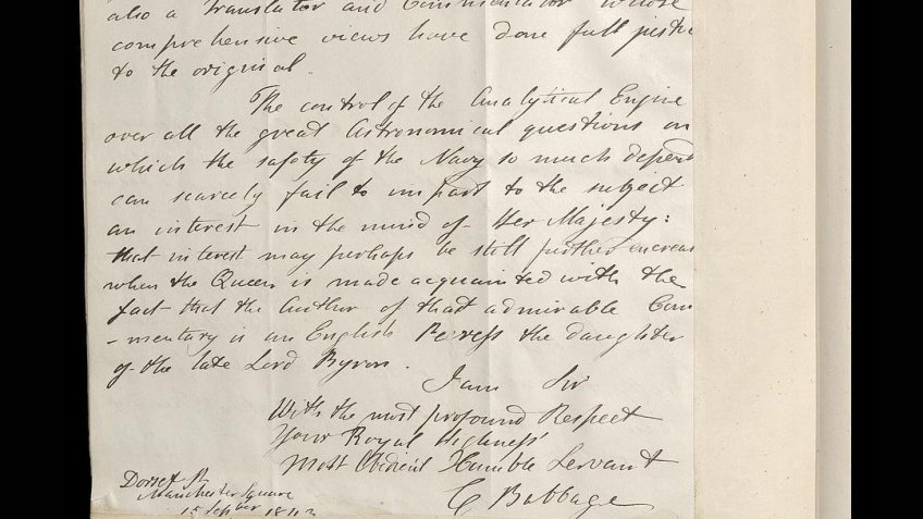 Первый пост — это не фото себя, любимой, не умильные котята и собачки, а вещь серьезная, как и полагает официальный статус владелицы. Это архивная семейная фотография, на которой представлено письмо, которое в 1843 году английский математик Чарльз Бэббидж написал ее прапрадедушке, принцу Альберту.