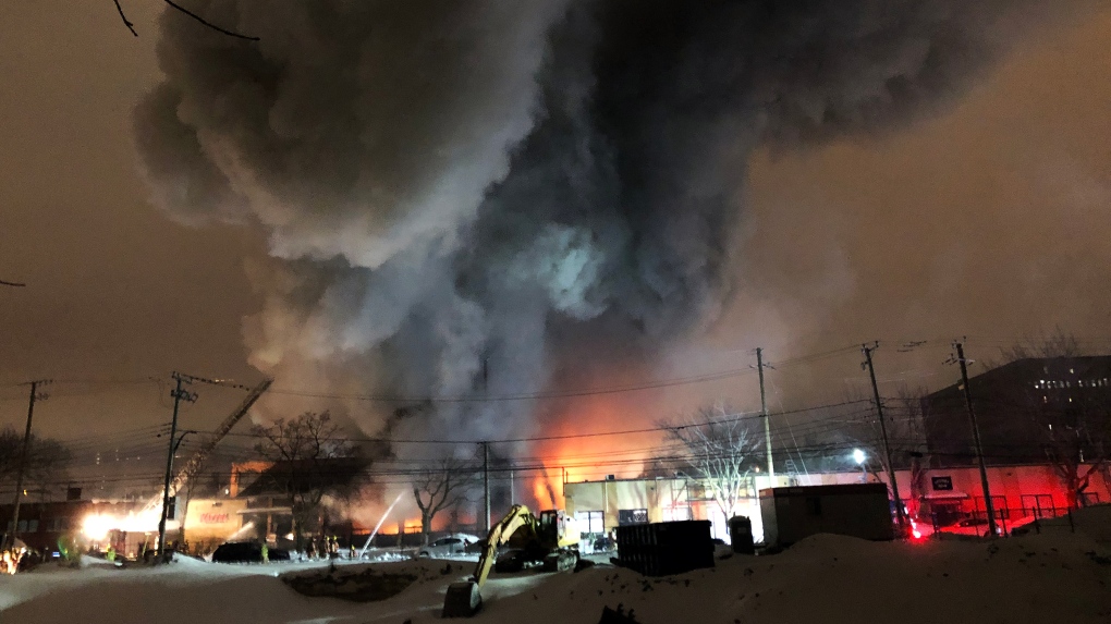 Пожар, спровоцировавший три сигнала тревоги в ночь на понедельник, 23 января, уничтожил промышленное здание, производящее медицинское оборудование, на Pitfield Blvd. между улицами Thimens и Henri Bourassa в районе St. Laurent.
