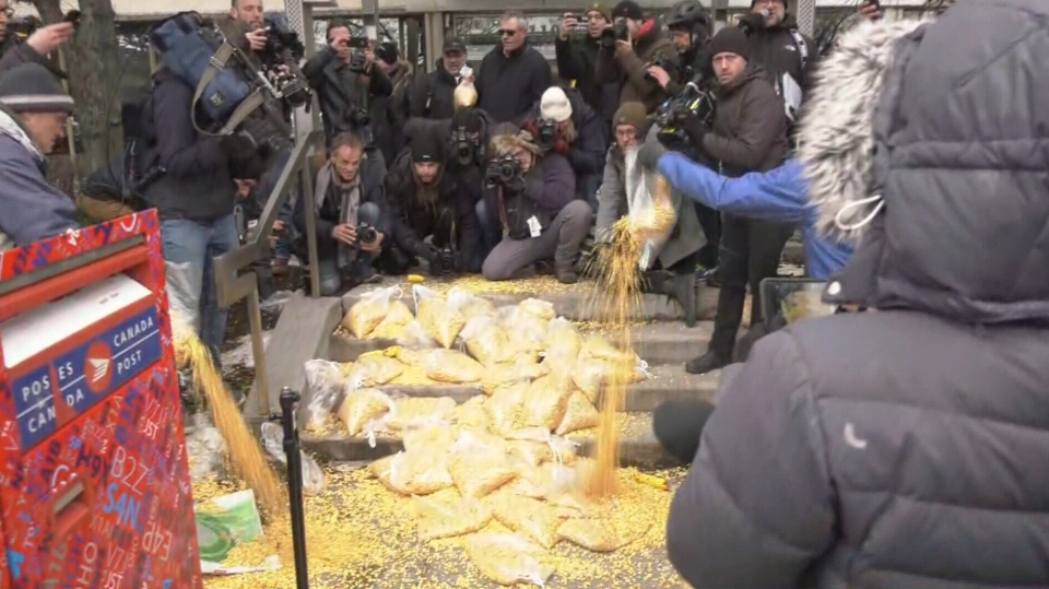 Фермеры Квебека привезли невероятное количество кукурузы, чтобы завалить ею Монреальский офис премьер-министра Трюдо, что находится на Boulevard Cremazie.