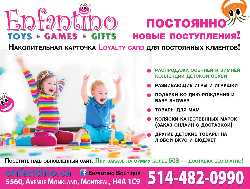 Посетите наш обновленный сайт enfantino.ca . При заказе на сумму более 50$ — доставка бесплатно!