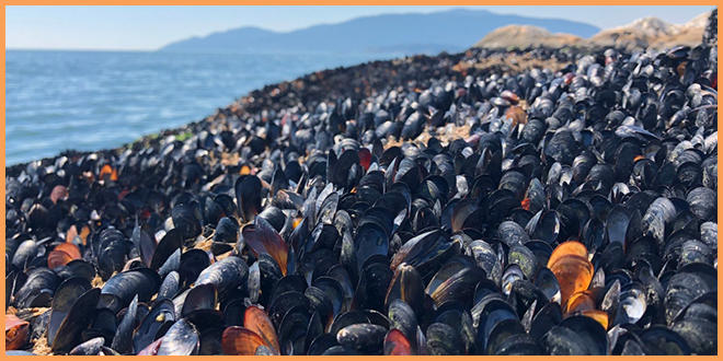 Эколог говорит, что мертвые мидии теперь покрывают многие берега западной Канады, и запах там соответствующий.