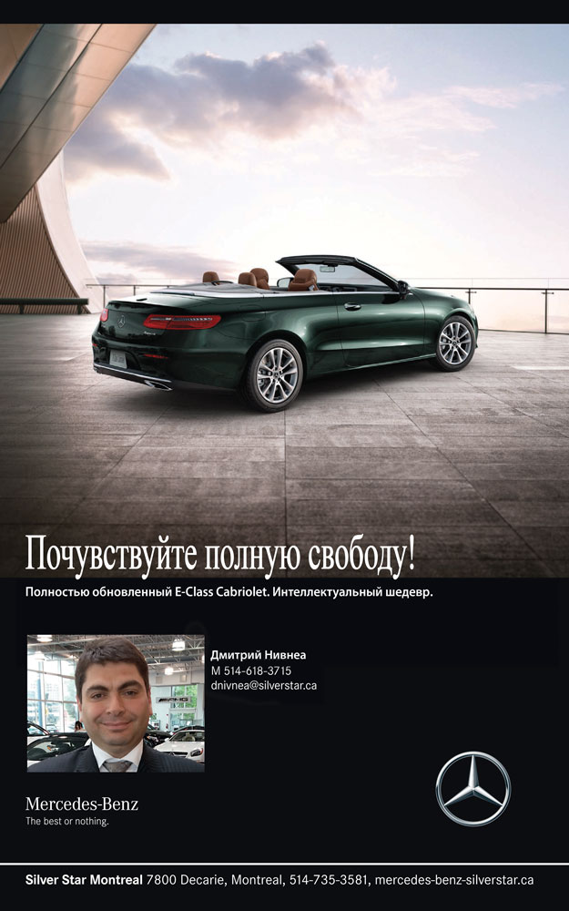 РекламаТранспорт, автомобили, самолёты, кораблиMercedes Benz. Silver Star Montreal. by Svitlana MatviyenkoФев 13, 2018Фев 9, 201800 Share0 Почувствуйте полную свободу! Полностью обновленный E-Class Cabriolet. Интеллектуальный шедевр. Silver Star Montreal 7800 Decarie, Montreal, 514-735-3581, mercedes-benz-silverstar.ca ============= Дмитрий Нивнеа 514-618-3715 [email protected] Пожалуйста, оставьте это поле пустым. Подпишитесь на ежедневную рассылку новостей о Канаде, Квебеке и Монреале. Читайте актуальные новости каждый день. Не пропустите главные события! Проверьте ваш почтовый ящик или спам, чтобы подтвердить свою подписку.