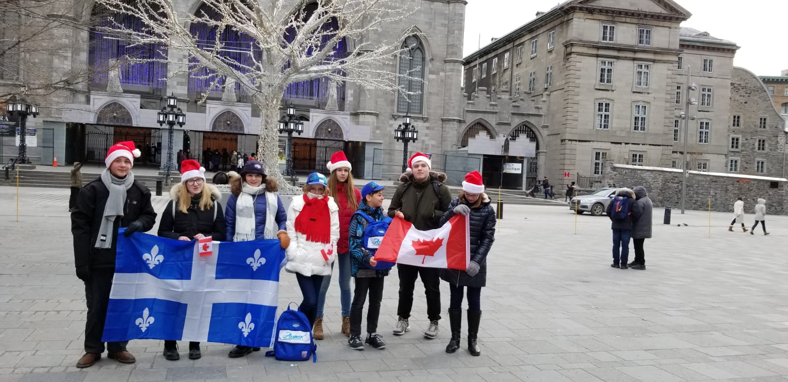 Ребята машут канадским и квебекским флагами и на трех языках поздравляют артековцев всего мира с наступающими праздниками!