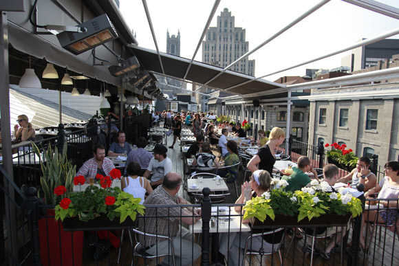 Впервые летние ресторанные террасы появились в Монреале 50 лет назад по случаю проведения Всемирной Выставки 1967 года. Если бы ни это международное событие, вероятно, сегодня было бы невозможно поужинать под открытым небом на террасе любимого ресторана. Первые монреальские террасы были построены на территории Экспо-67, так как муниципальный регламент запрещал открывать их на улицах города. По словам историка Роже Ла Роша, мэр Жан Драпо не поддерживал открытие террас в Монреале из-за соображений безопасности. Однако одним из главных удовольствий для посетителей выставки стала возможность пообедать на свежем воздухе. Впервые женщины могли выпить пива на разлив, ведь в то время им было запрещено посещать пивные бары. Идея уличных террас так понравилась монреальцам, что резко возросло количество обращений к мэру с просьбой разрешить организовывать их в городе. В конце концов, такое разрешение было получено 22 сентября 1967 года. Тем не менее, для того чтобы ресторанные террасы появились повсеместно, понадобилось время. И вот сегодня редкий монреальский бар или ресторан отказывается от этой летней опции. Как отметил владелец кафе Santropol Гарт Жилкер, террасы стали неотъемлемой частью культуры. «Кроме хоккея у нас есть еще один популярный вид спорта: устроится на террасе и смотреть на людей», — сказал он.
