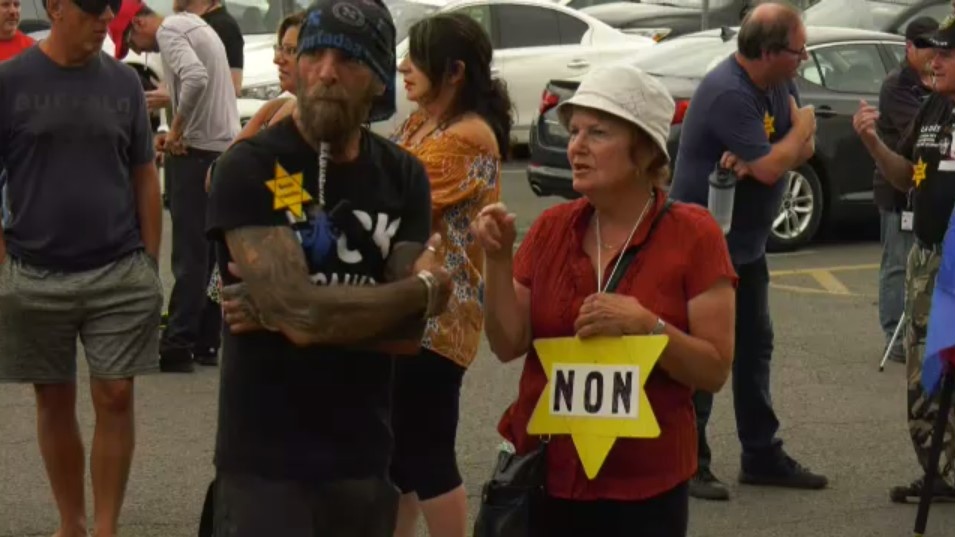 Демонстранты, выступающие против квебекской системы паспортов вакцинации, которая требует, чтобы люди предъявляли доказательства вакцинации перед посещением определенных мероприятий и мест отдыха, были замечены с желтыми звездами Давида на многочисленных акциях протеста.