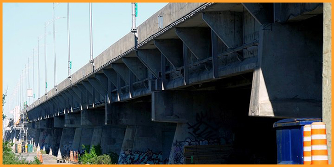 Итак, от лица дорожников Боннардель заявил, что в следующий понедельник, 31 мая будет открыто по одной полосе движения по мосту Иль-о-Турт в каждом направлении. Учитывая стандартный ежедневный траффик путепровода — более 80 тысяч авто, включая до 10 тысяч фур — очень сомнительно, что одна полоса сможет положительно повлиять на пробки в районе.