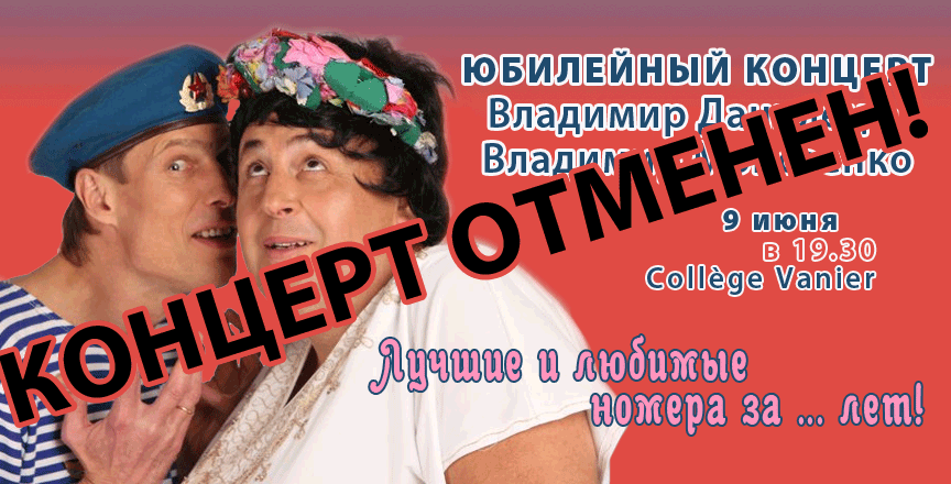 Зрители всегда с нетерпением ожидают концерты этого эксцентричного и невероятно смешного дуэта. Яркие образы и неподражаемая мимика заставят вас смеяться все два часа, и вы надолго сохраните хорошее настроение. 09 июня в 19.30 в Collège Vanier зажигательный дуэт представит давно полюбившиеся, хорошо известные хиты, а также свои новые номера.