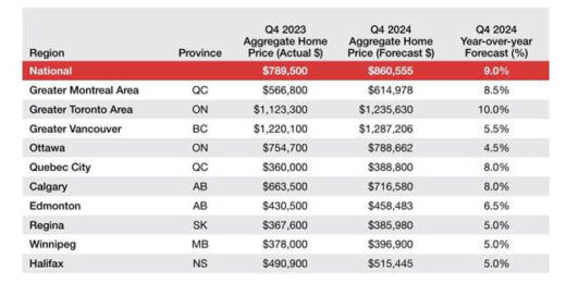 [box type=»shadow» align=»aligncenter» class=»» width ]В опубликованном сегодня обзоре цен на жилье Royal LePage прогнозирует, что совокупная стоимость жилья в Канаде в четвертом квартале 2024 года вырастет на 9% по сравнению с аналогичным периодом прошлого года. Этот показатель увеличился на 4,3 процента в годовом исчислении до 812 100 долларов в первом квартале 2024 года, что оказалось выше ожиданий. [/box]