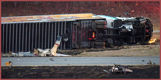 Вечером в среду самолет вылетел из аэропорта, но вскоре потерял высоту. Очевидно, пилот пытался сесть на шоссе. Однако он врезался в движущийся на юг тягач с прицепом.