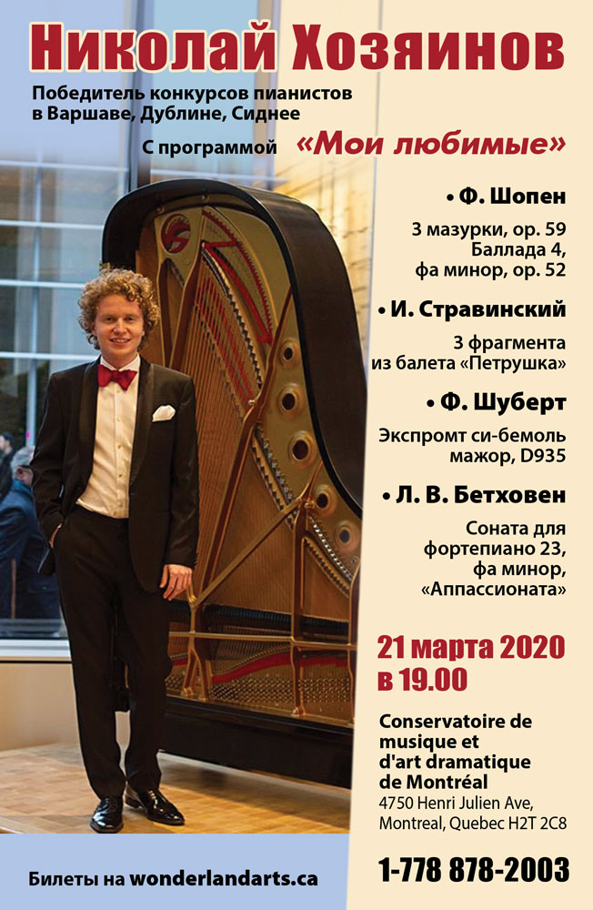 Победитель конкурсов пианистов в Варшаве, Дублине, Сиднее Николай Хозяинов