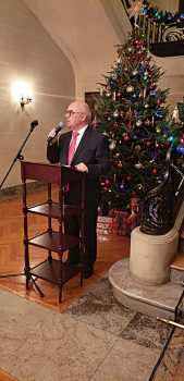 Нас, пришедших в этот вечер на прием, ожидала прекрасная вечерняя программа. Рядом с яркой, с невероятным вкусом наряженной елкой, наш замечательный консул очень тепло и душевно поздравил собравшихся с наступающими праздниками и поблагодарил русскоязычную общину за ее сплоченность, талант и активность!