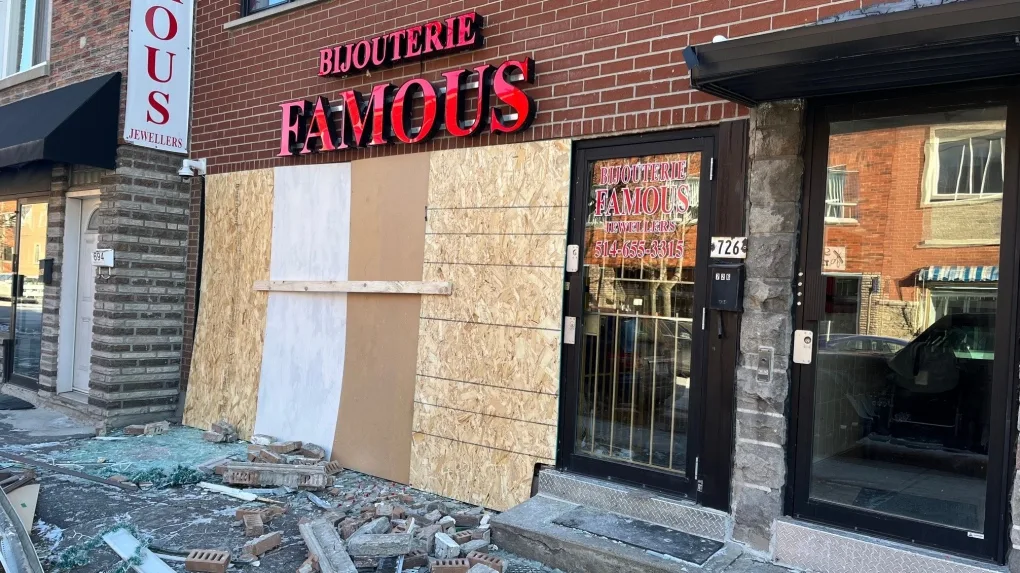 По данным полиции, несколько человек намеренно врезались на внедорожнике в витрину магазина, чтобы совершить ограбление.