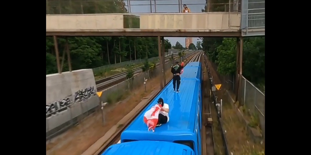 Видео, размещенное на YouTube 1 июля, показывает двух мужчин в масках с канадскими флагами, которые «серфингуют» на крыше движущегося поезда метро на линии 3. Затем двое людей спрыгивают, когда поезд входит на станцию Кеннеди, и убегают с места происшествия. Видео опубликовано с заголовком «Отмечаю величайшую страну на земле, катаясь на поездах в моем родном городе. С Днем Канады».