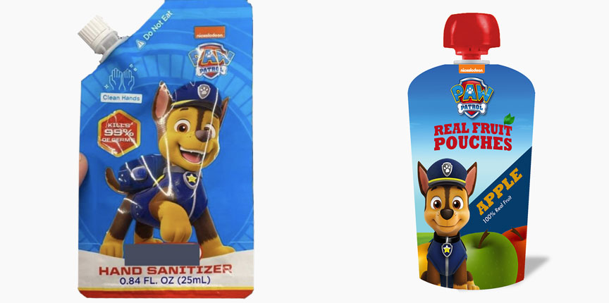 Health Canada сообщает, что некоторые компании упаковывают дезинфицирующие средства для рук в пакеты с мультяшным рисунком, чтобы привлечь внимание детей. Их упаковки очень похожи на пакетики с фруктовыми пюре или соками. Дети, особенно если они не находятся под присмотром, могут легко перепутать упаковки со спиртосодержащим продуктом и лакомством. В первую очередь это касается детей, которые еще не умеют хорошо читать.