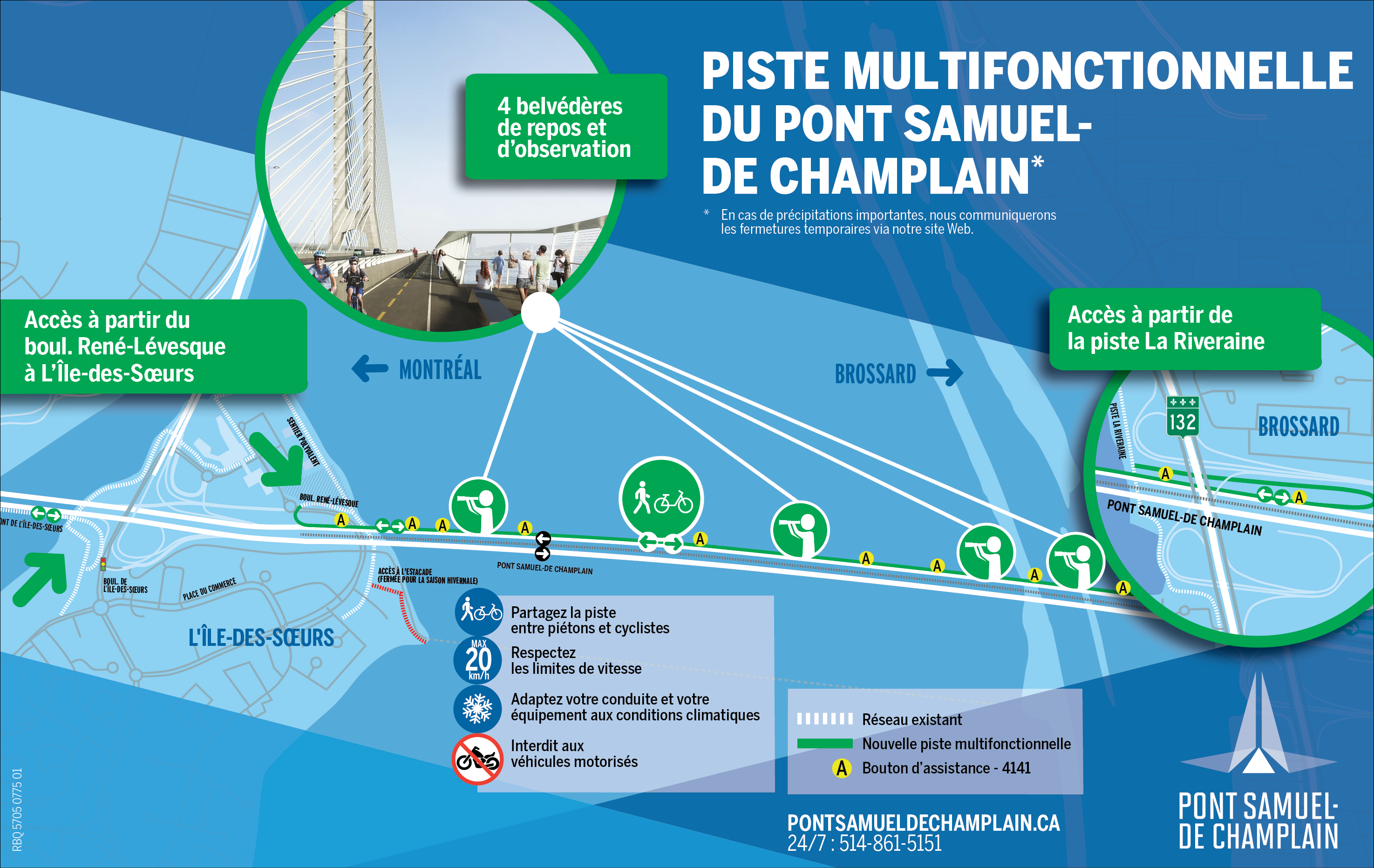 Начиная с 23 декабря велосипедисты и пешеходы смогут в любое время и в любое время года использовать эту трассу, которая соединяет город Монреаль с Южным берегом. На протяжении всего маршрута установлены четыре беседки, из которых открываются панорамные виды на Гранд-Монреаль.