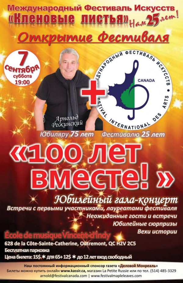 Юбилейный Гала-концерт «100 лет вместе : Президенту фестиваля Арнольду Рожинскому 75 + фестивалю 25»