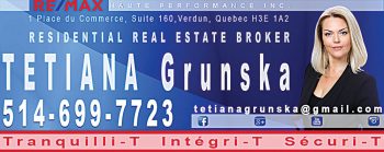 А по всем вопросам, связанным с приобретением своего островка комфорта – обращайтесь к Татьяне Грунской по телефону 514-699-7723. Она с удовольствием готова ответить на все интересующие вас вопросы!