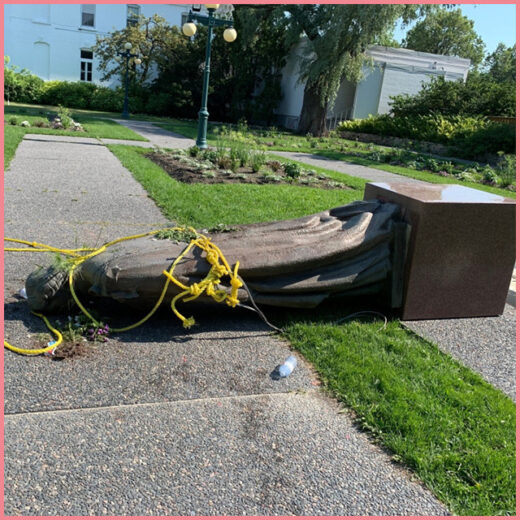 [box type=»shadow» align=»aligncenter» class=»» width=»»]В этом году немало статуй по всей Канаде пострадало от рук (и ног) протестующих после обнаружения останков детей на территориях школ-интернатов для коренного населения в Британской Колумбии и Саскачеване.[/box]