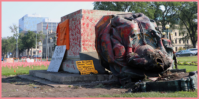 В четверг во время маршей «не-праздования» Дня Канады жители Виннипега снесли памятники королеве Виктории около Законодательного собрания Манитобы и королеве Елизавете II рядом с Домом правительства.