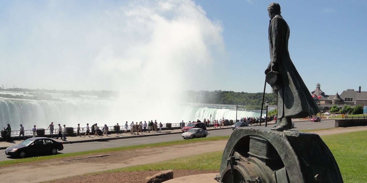 В Парке королевы Виктории находится статуя одного из величайших научных умов мира. Монумент изображает Николу Теслу, наблюдающего за водами Ниагары, которые имели ключевое значение для важнейшего из его достижений. Научные открытия, связанные с электричеством, чаще всего приписывают Бену Франклину и Томасу Эдисону, но именно Тесла изобрёл переменный ток, который позволил электричеству стать практическим инструментом человека. Один из наиболее крупных проектов Теслы был осуществлён на Ниагаре (большая часть комплекса находится на американской стороне). Вдохновлённый силой Ниагарского водопада, который он видел на фотографиях, учёный жаждал обуздать силу водных потоков. В конце концов этот порыв привёл к изобретению и строительству первой в мире гидроэлектростанции переменного тока. Монумент увековечивает Николу Теслу стоящим на своих двигателях переменного тока с тростью в руках. Скульптура, построенная при финансировании Ниагарской сербской православной церкви Святого Георгия, выполнена художником Лесом Дрисдейлом из Гамильтона, Онтарио.