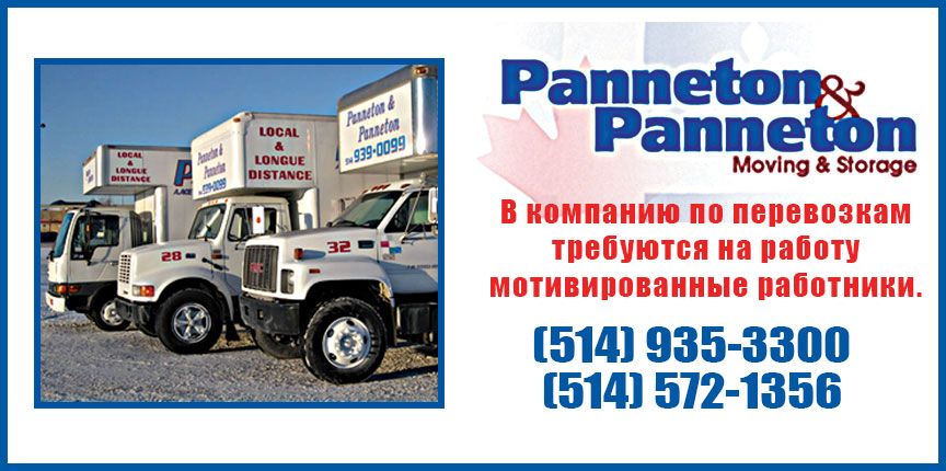 Выбор редакцииPanneton & Panneton. Moving & Storage. by Svitlana MatviyenkoФев 26, 2019Фев 26, 201901 Share0 В компанию по перевозкам требуются на работу мотивированные работники. Действительные водительские права — преимущество. Звоните 514-939-0099 по поводу доп. информации или собеседования. [tie_full_img][/tie_full_img] Пожалуйста, оставьте это поле пустым. Подпишитесь на ежедневную рассылку новостей о Канаде, Квебеке и Монреале. Читайте актуальные новости каждый день. Не пропустите главные события! Проверьте ваш почтовый ящик или спам, чтобы подтвердить свою подписку.
